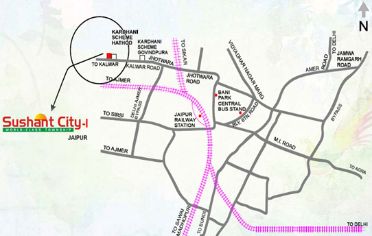 A beautifully landscaped township spread over 330 bighas greets you. Sushant City-I is coming up on Kalwar Road and is just 4 kms away from JDA's Govindpura Kardhani Scheme, adjacent to Hathod Kardhani Scheme. One can reach this pollution free, planned township with state-of-the-art infrastructural facilities in 20 minutes from M. I. Road. It also provides convenient connectivity to Delhi-Ajmer Expressway which is just 7 kms from here and also the upcoming Jodhpur highway. The project is duly approved by concerned government bodies and has all the statutory clearances.